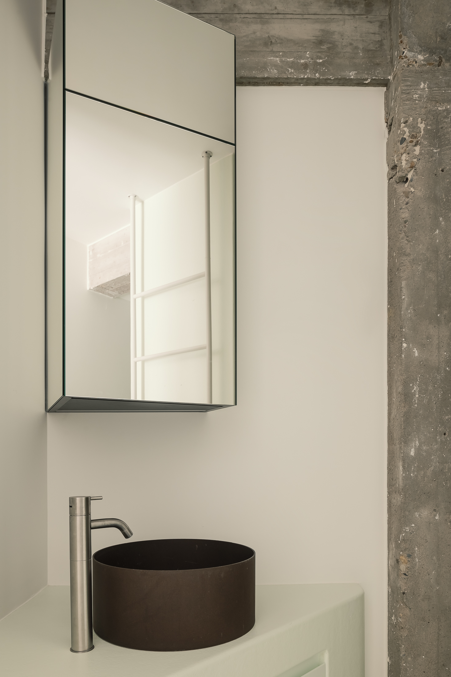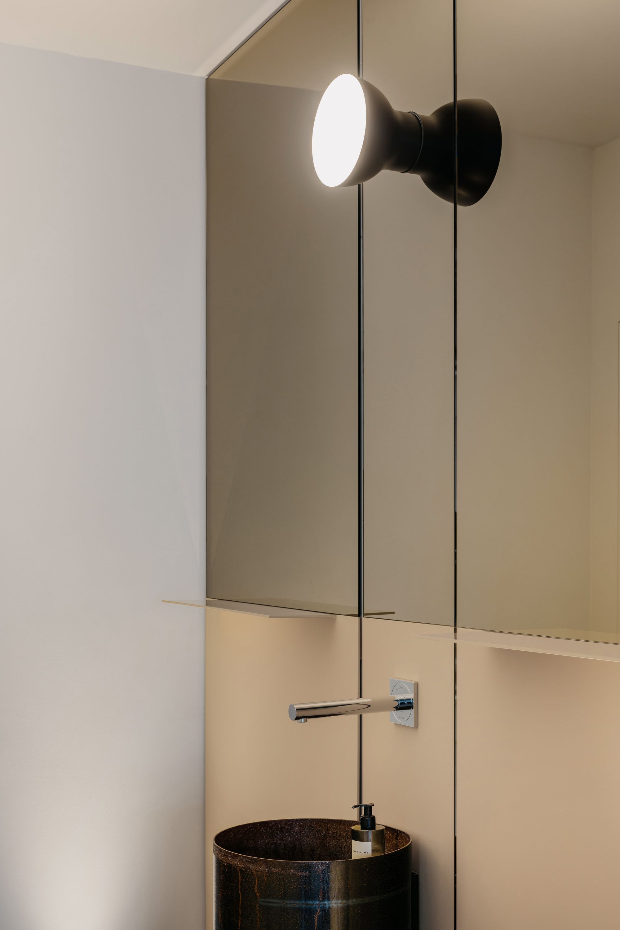 The welds reveal our design approach. We began with a simple metal tube shape and integrated technical and functional solutions. For instance, the wall-mounted model is crafted to completely conceal the siphon and wall connection. Additionally, many models feature a built-in shelf for hand soap, allowing it to be both elegantly displayed and securely positioned within the sink during use.