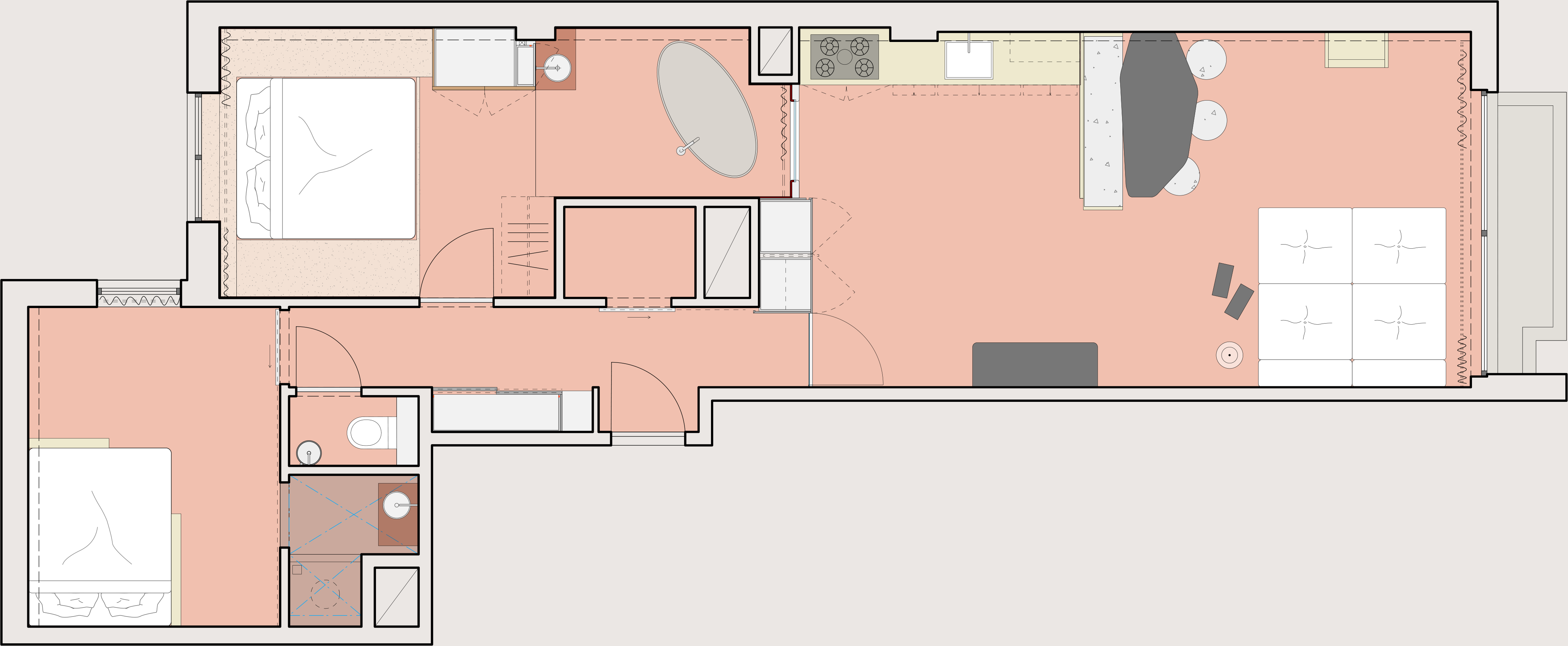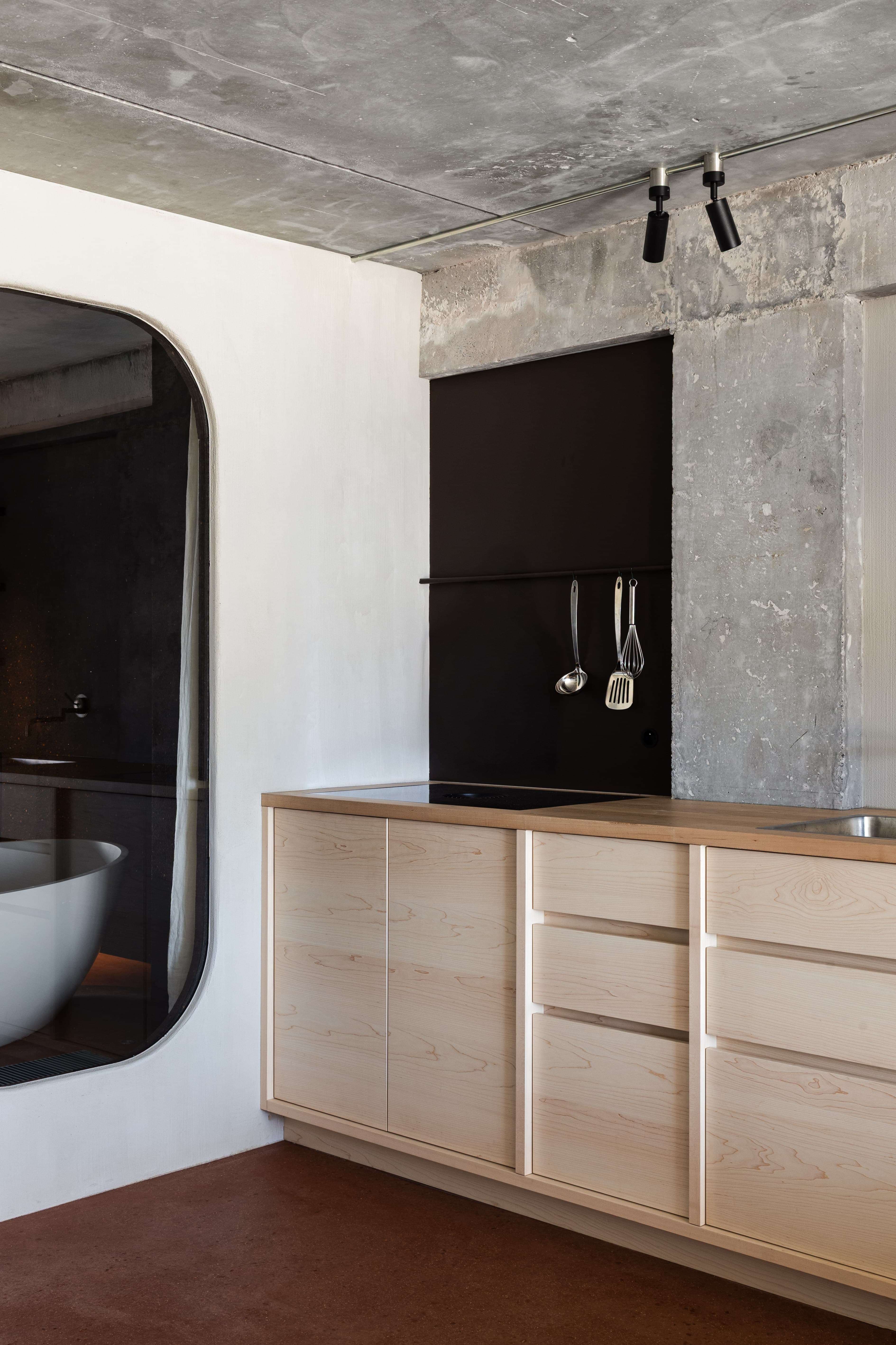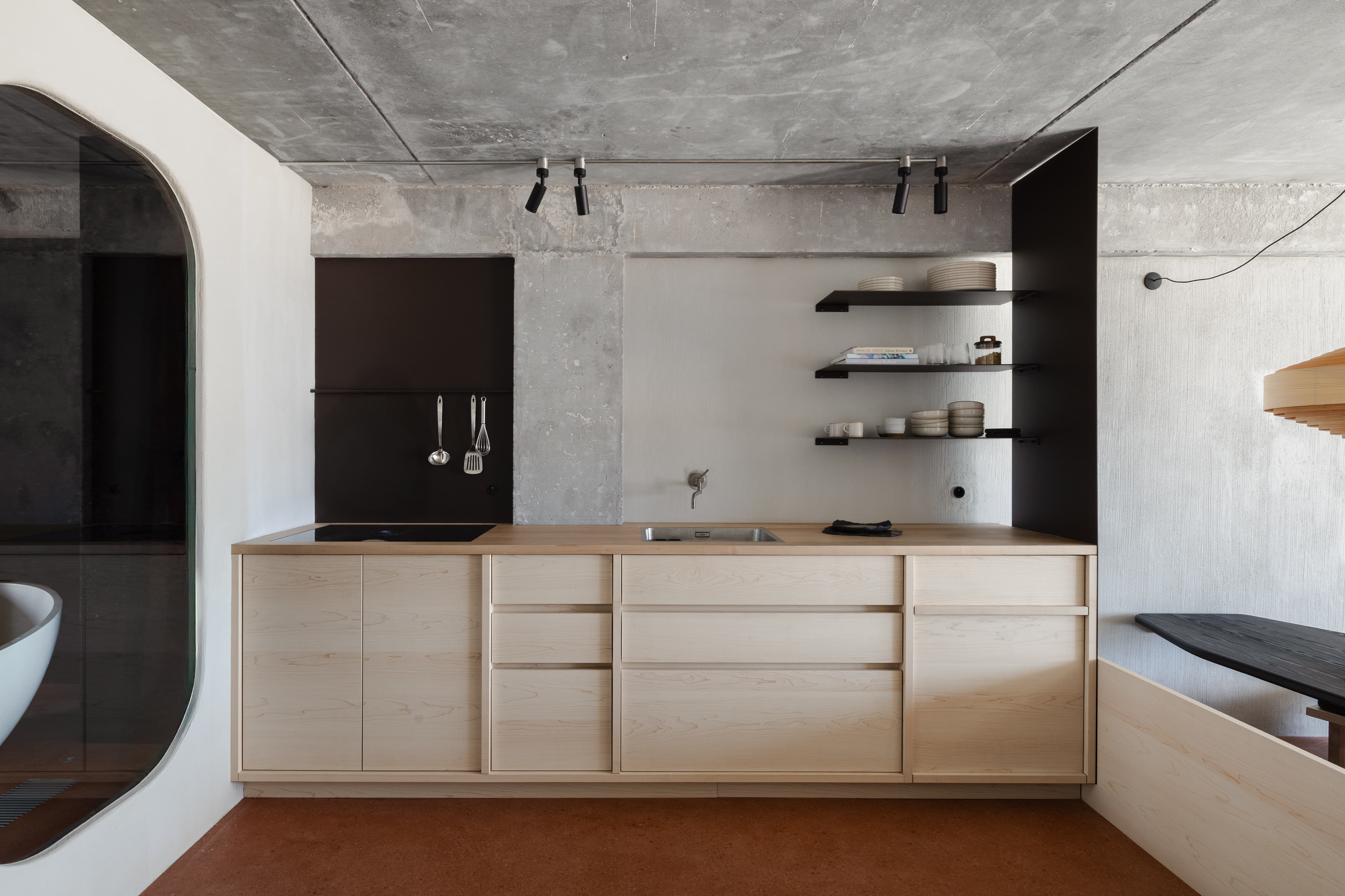 It sleeps up to 6 guests, with a maximum of 4 adults, and invites you to enjoy moments with loved ones as well as alone. We created a warm setting where texture and materiality play a central role. For example, the flooring was done in a thoughtfully chosen material called Terrafloor: a blend of natural gypsum and lime, applied as a plaster directly onto the floor. The finish isn’t smooth, but rather softly undulating, with the texture of the aggregates subtly perceptible to the touch.